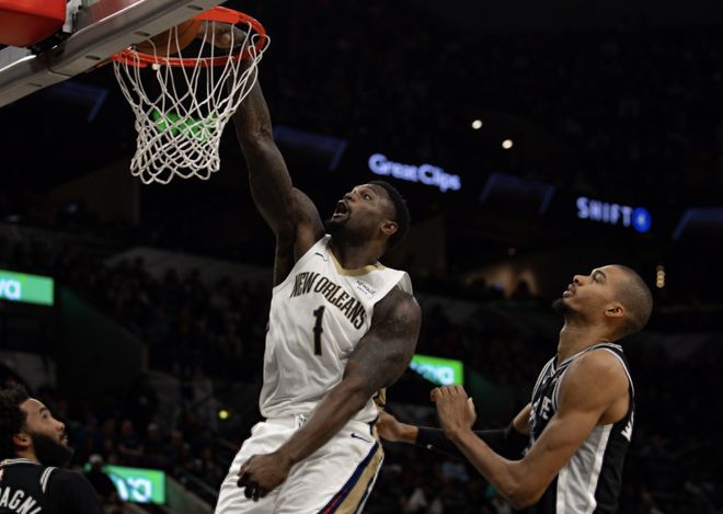从第二节开始,锡安开始带队蚕食马刺