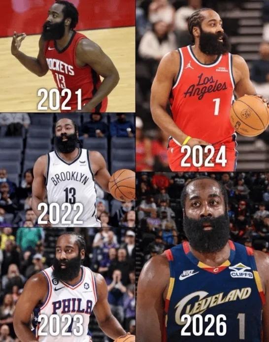 哈登在此前缺席快船两场比赛,他主动申请交易离队,如今哈登被交易到骑士,将成为哈登最近6年效力的第5支球队。哈登生涯至今依然无冠,而加盟骑士有望去冲击总冠军,毕竟东部的竞争压力更小,而骑士还有米切尔、阿伦与莫布利等球星,整体阵容实力相当不错。
