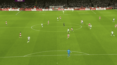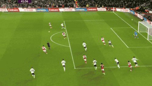 第37分钟,阿森纳平地起惊雷,梅里诺送出挑传,特罗萨德插上后转身射门一气呵成,皮球被范德文挡了一下,滚入死角。