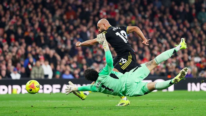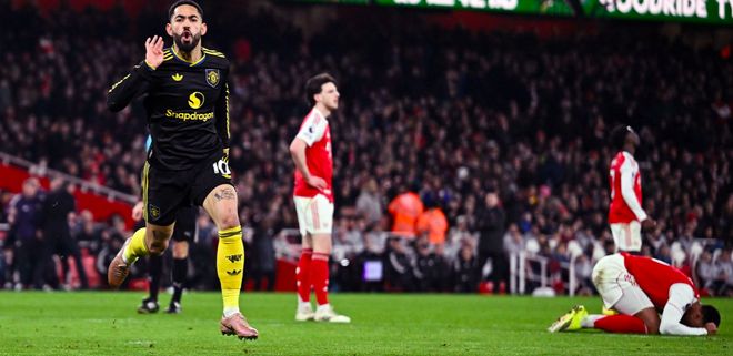 比分落后的红魔开启了狂轰滥炸的模式,姆伯莫和B费连续威胁枪手的球门。