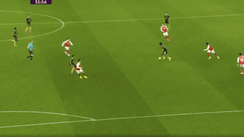 半场结束,两队战成1-1平。下半场开始仅仅5分钟,阿森纳球门又一次被洞穿。