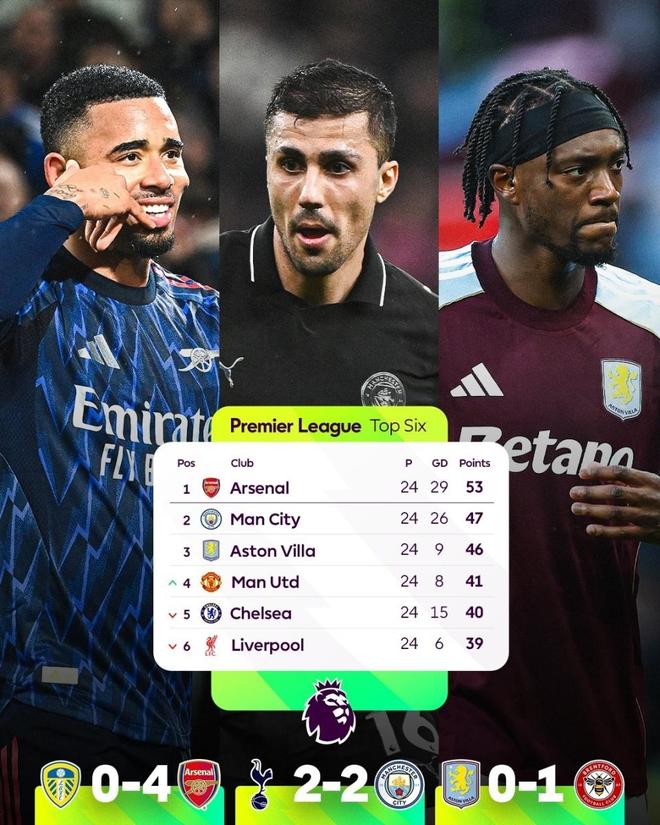 而毫无疑问,领头羊阿森纳成为最大赢家。上轮英超,阿森纳主场2-3不敌曼联,一度让领先优势被蚕食到仅剩4分。
